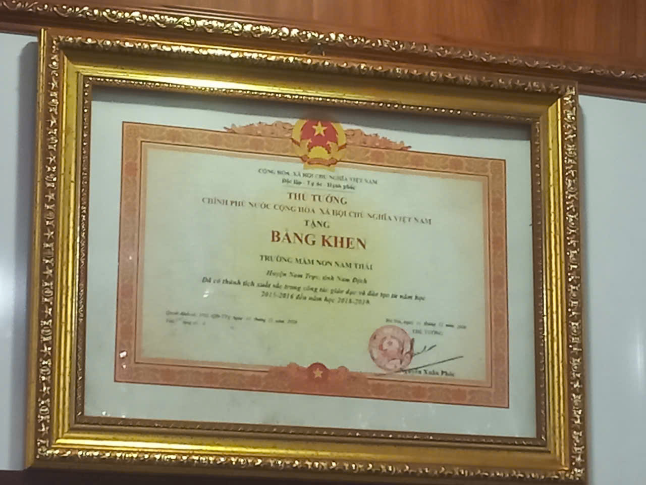 Trường Mầm non Nam Thái đã được công nhận lại Chuẩn quốc gia mức độ 1, được công nhận trường đạt tiêu chuẩn Xanh – Sạch – Đẹp – An toàn và đạt Kiểm định chất lượng mức độ 2 tháng 9/2021.